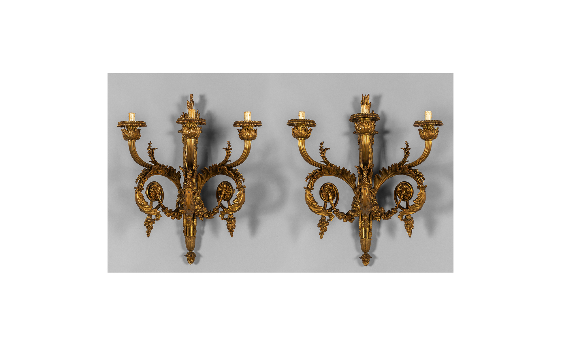 Coppia di grandi apliques Napoleone III in bronzo dorato fine sec.XIX