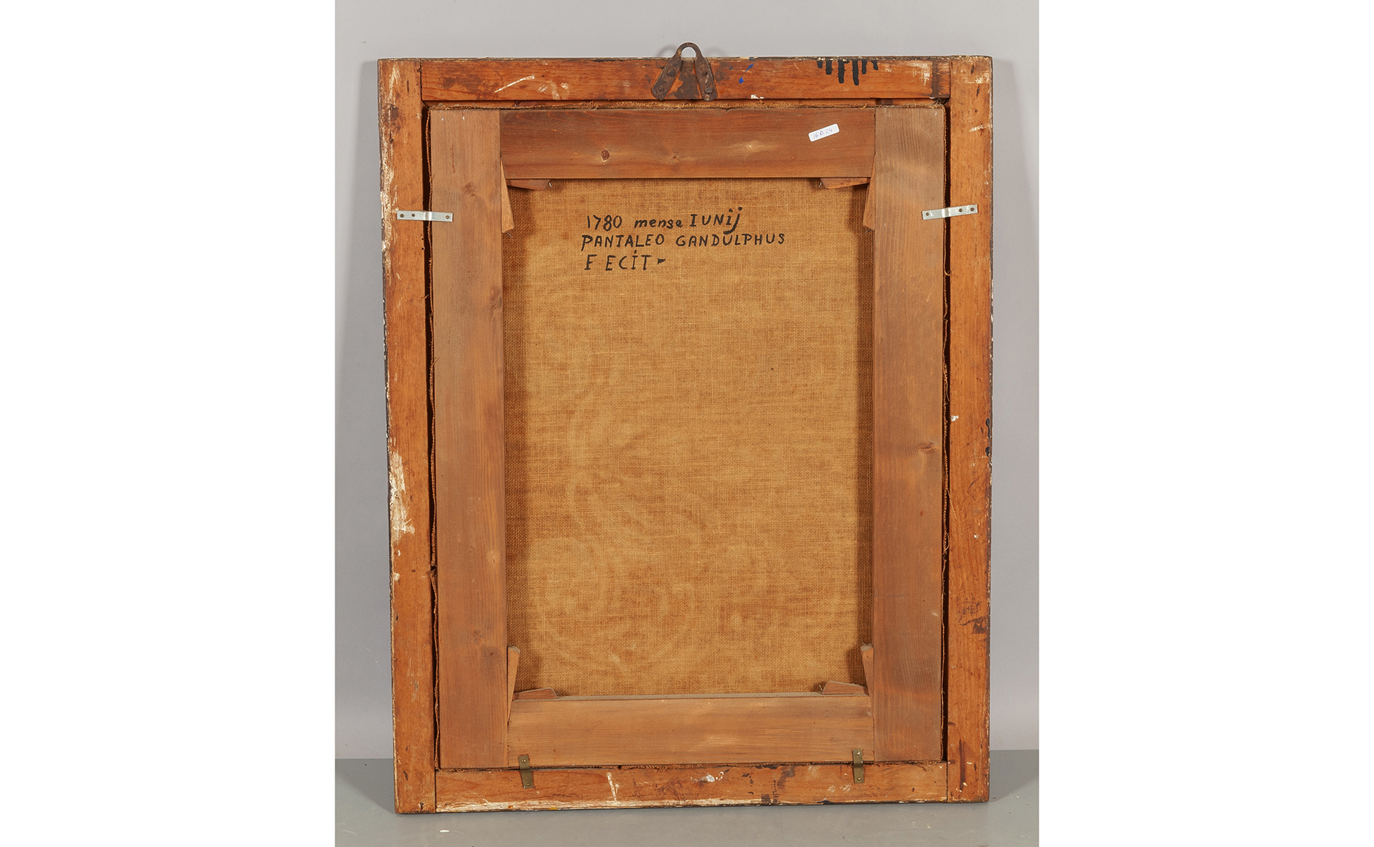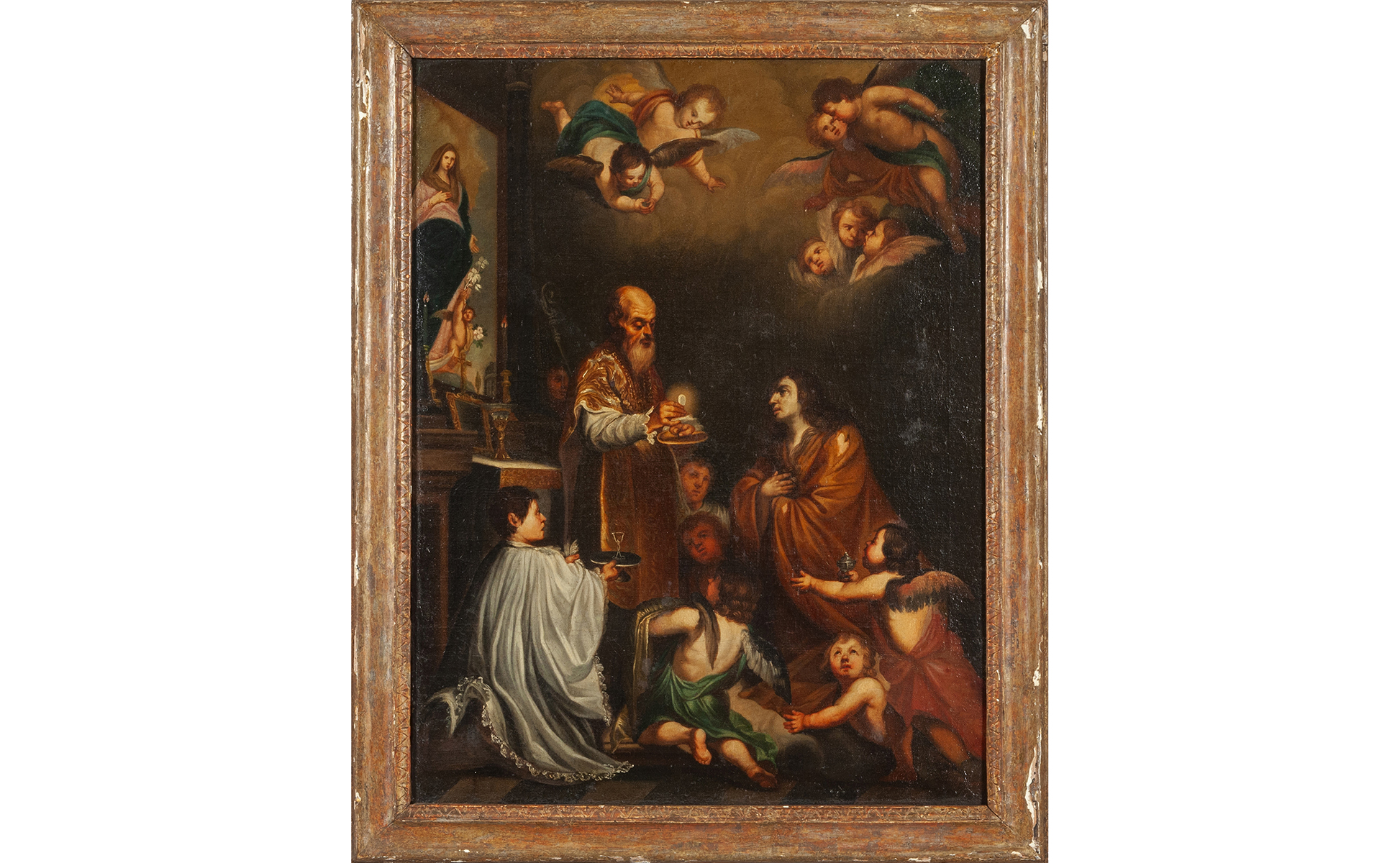 Scuola italiana sec.XVIII 'Eucarestia' olio cornice in legno laccato a mecca