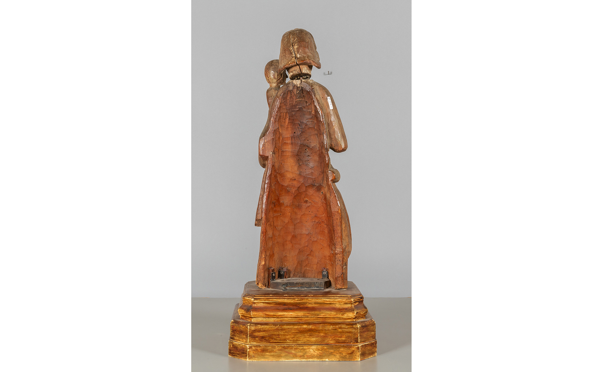 Precedente Lotto 0932 Successivo Aste Boetto - Via Mura dello Zerbino 10R, 16122 Genova ASTA DI ANTIQUARIATO Asta di Antiquariato mercoledì 18 giugno 2025 ore 15:00 (UTC +01:00) OGGETTISTICA Madonna con Bambino scultura in legno sec.XVIIh.cm.89 base non coeva