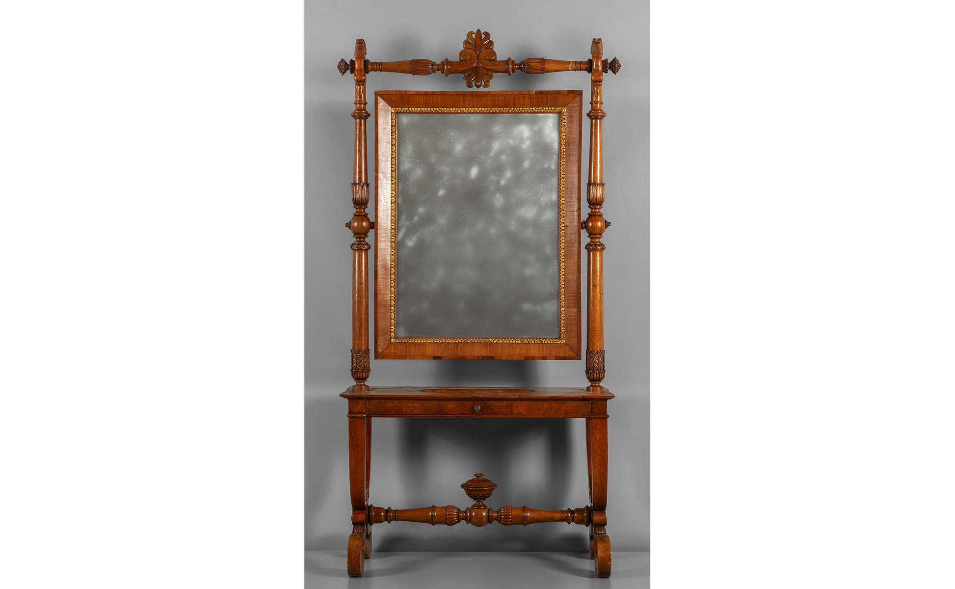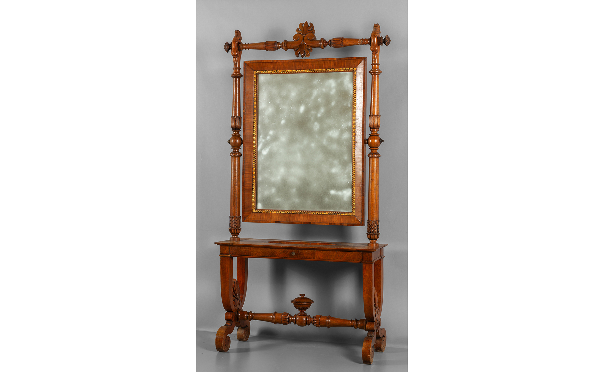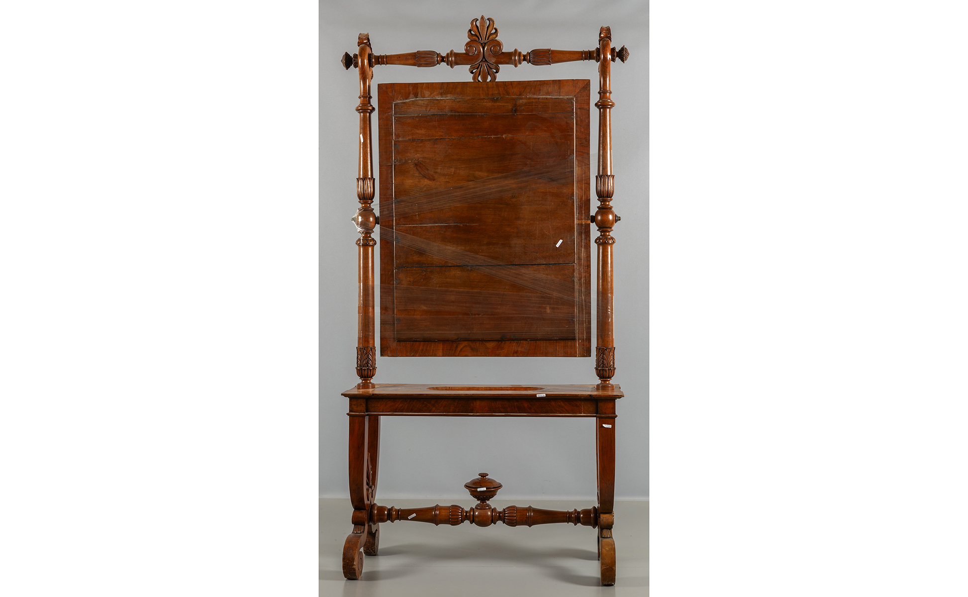 Grande psiche Carlo X in noce parte inferiore a toilette con cassettino nella fascia sec.XIX