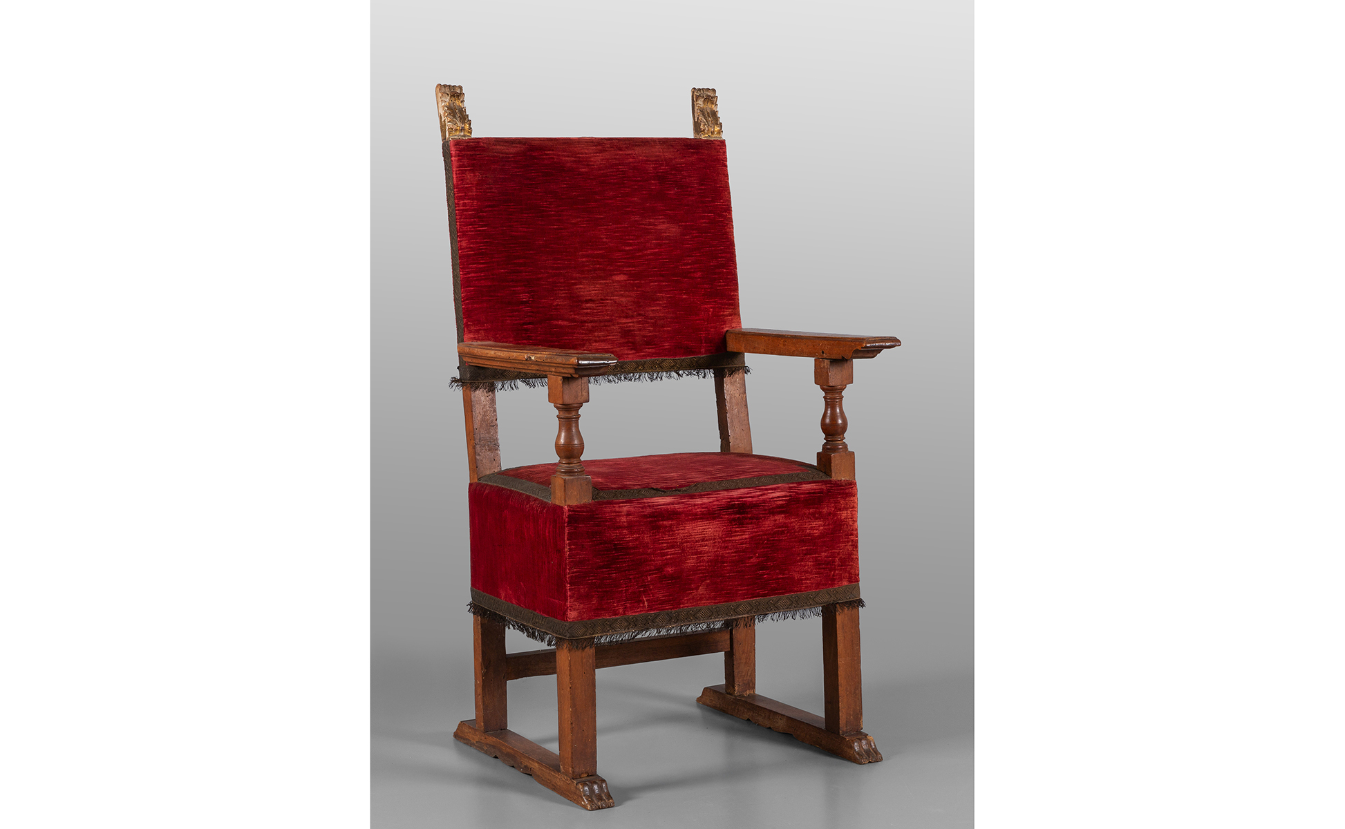 Precedente Lotto 0952 Successivo Aste Boetto - Via Mura dello Zerbino 10R, 16122 Genova ASTA DI ANTIQUARIATO Asta di Antiquariato mercoledì 18 giugno 2025 ore 15:00 (UTC +01:00) MOBILE Seggiolone Luigi XIV in noce rivestito in velluto fine sec.XVII