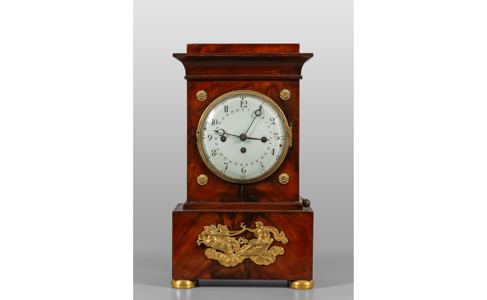 Orologio Carlo X decorato sul fronte con placca in bronzo raffigurante figura mitologica sec.XIX