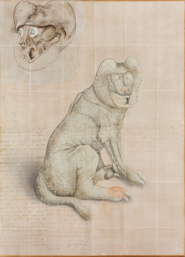 CARLO GUARIENTI Treviso 1923 Cane, 1975 China, inchiostro e acquerello su carta applicato su tela dall’artista, cm 50 x 40 Firma in basso al centro Esposizioni Galleria d’Arte Moderna e Contemporanea, Verona 1979. Etichetta al retro