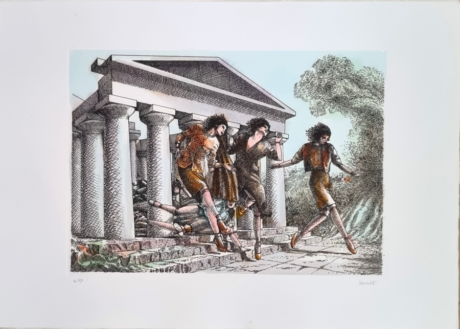 MORELLI VINCENZO Bagnacavallo 1896 - Bogliaco 1976 "Senza titolo" Incisione su cartoncino cm 70x50. Firmata sul fronte in basso a destra, tiratura 15/99 a sinistra.