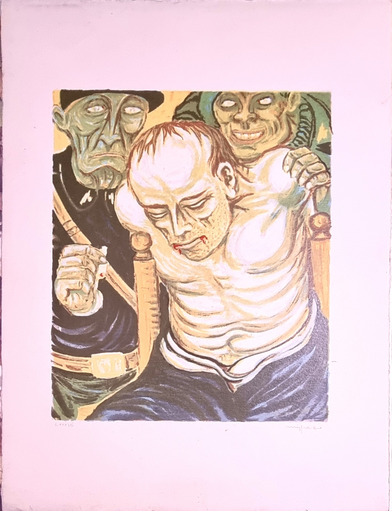MIGNECO GIUSEPPE Messina 1903 - Milano 1997 "Senza titolo" Serigrafia su cartoncino cm 56x76. Firmata sul fronte in basso a destra, tiratura LXXXI/C a sinistra. (Presenta piccole fioriture).