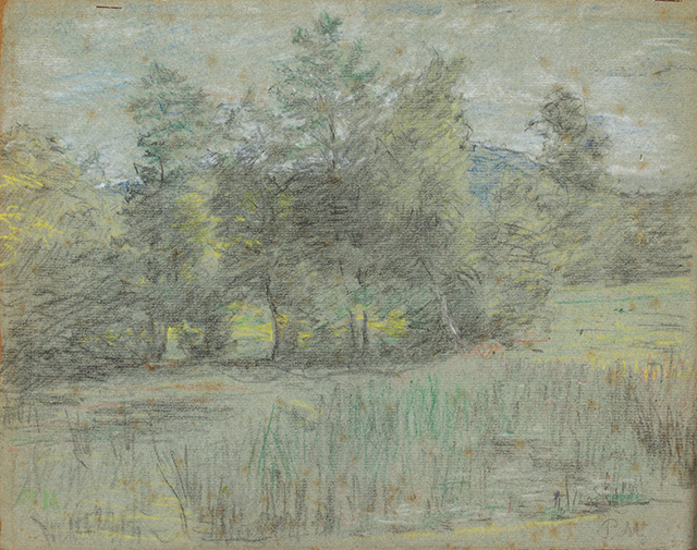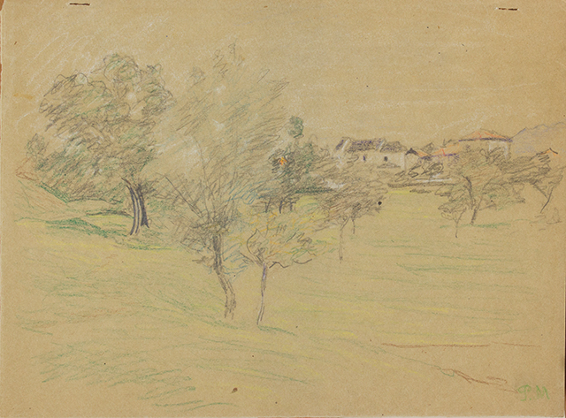PIERO MARUSSIG Trieste 1879 - Pavia 1937 Paesaggio, 1930 ca. Due disegni a pastello su carta, cm 23 x 31 e cm 23,7 x 30 Siglati in basso a destra Provenienza Prof. Giorgio Di Genova, Roma