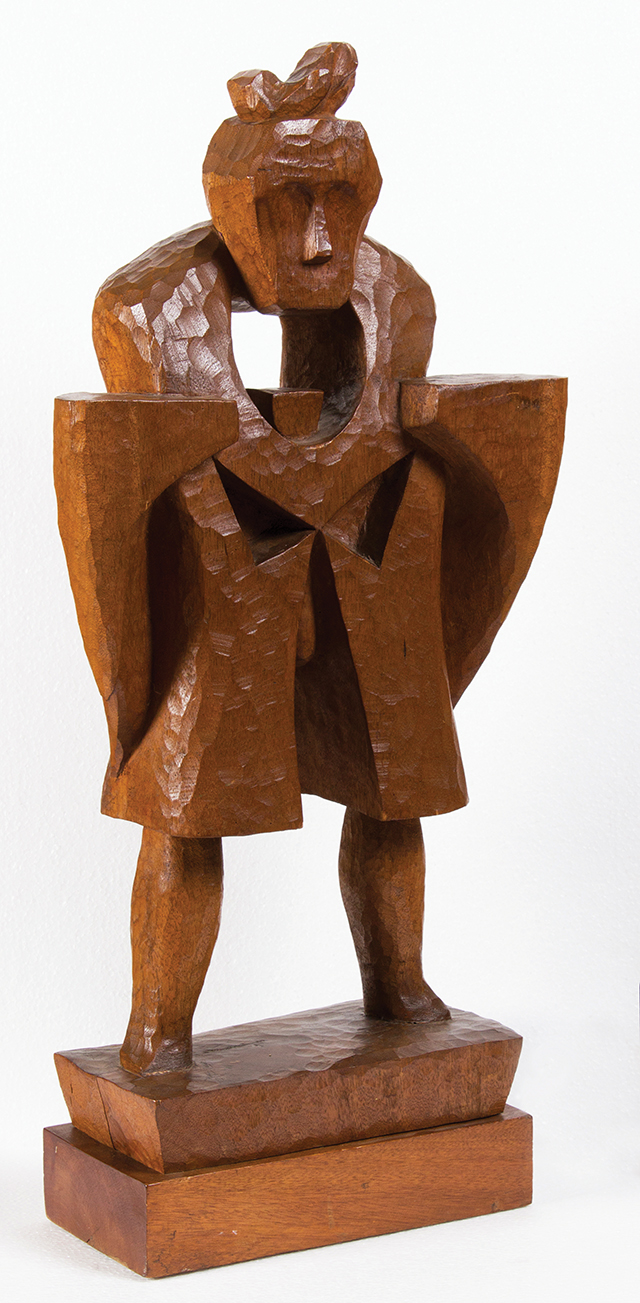 ANNIBALE ZUCCHINI Ferrara 1891 - Garbagnate 1970 Uomo futurista, 1938 ca. Scultura in legno, h. cm 80 X 37 Firma al retro Esposizioni Parigi, 1965