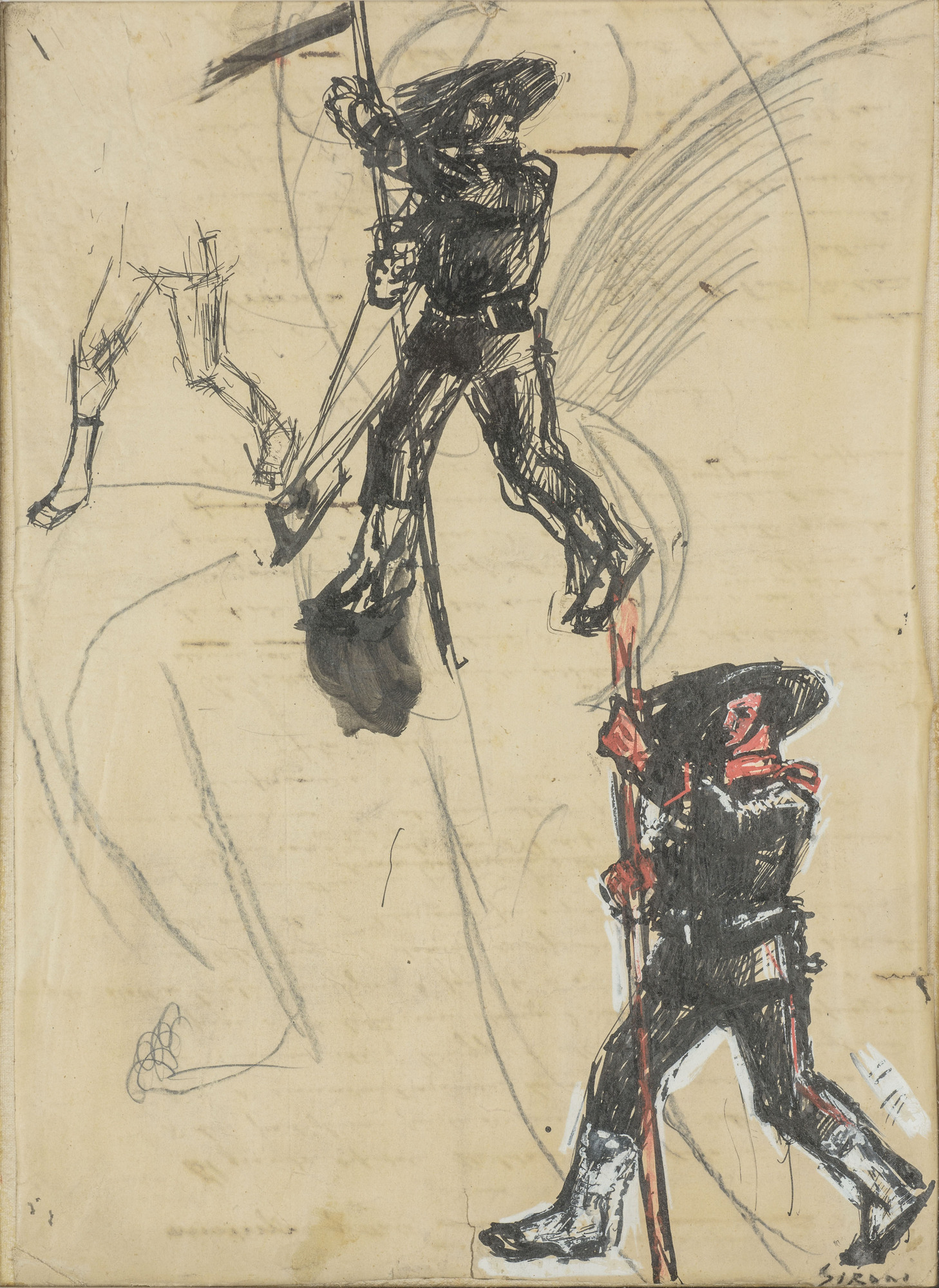 Studi per l'illustrazione '...SULLE BALZE, SULLE BALZE DEL TRENTINO PIANTEREMO, PIANTEREMO UNA BANDIERA...', 1915
