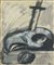 Tempera, matita grassa e matita su carta applicata su tela, cm 43 x 36