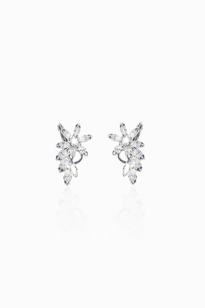 in oro bianco, a lobo, con foglie in diamanti taglio brillante e navette per totali ct 1,71, colore G-H, purezza VS