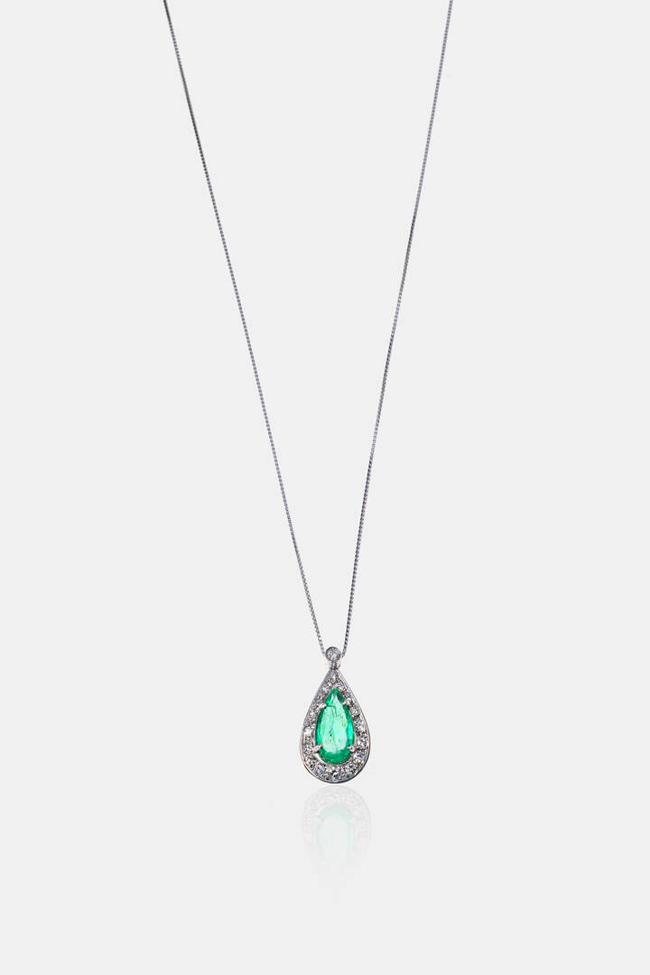 in oro bianco, con goccia di smeraldo di ct 1,80 ca e diamanti taglio 8/8 per totali ct 0,20 ca (frattura)