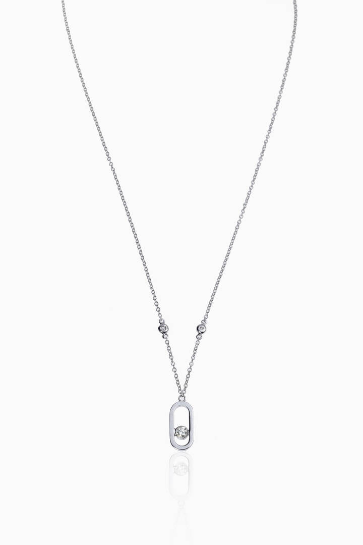 in oro bianco con elemento ovale con al centro diamanti taglio brillante e lungo la catena due diamanti taglio brillante per totali ct 0,14 ca, probabile colore G-H, purezza IF-VVS
