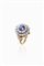 in oro giallo e argento, XIX secolo, a margherita, al centro zaffiro Ceylon di ct 1,0 ca e contorno di rosette di diamanti per totali ct 2,0 ca