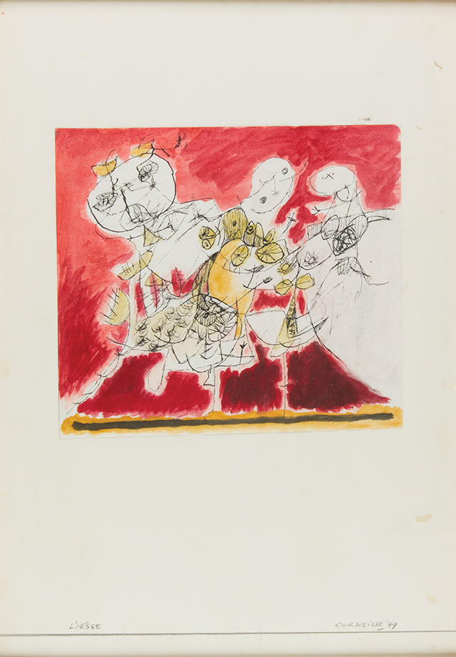 CORNEILLE Liegi 1922 - uvers-sur- Oise 2010 Liesse, 1949 Tecnica mista su carta, cm 22 x 25 Firma in basso a destra Esposizioni Corneille, Galleria San Carlo, Milano presentazione V. Sgarbi Catalogo mostra tav.3 Autentica su foto Archivio Corneille