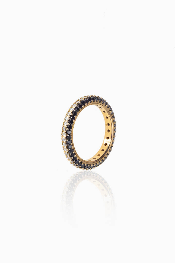 in oro giallo con fila centrale di diamanti taglio brillante di colore bianco e due file di diamanti di colore nero per totali ct 1,96 ca.