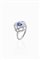 in oro bianco, sommità geometrica con zaffiro taglio ovale di ct 0,55ca e diamanti taglio brillante per totali ct 0,30 ca