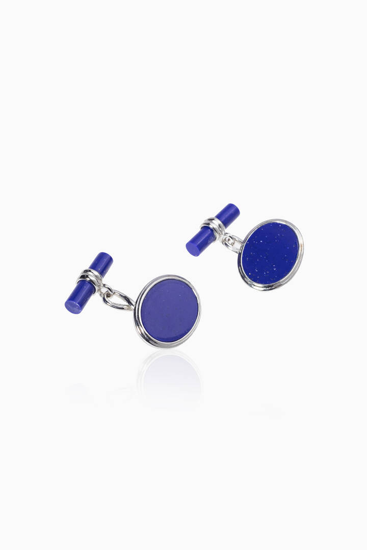 in argento 925/1000, di forma ovale con barrette e dischi in lapislazzuli.