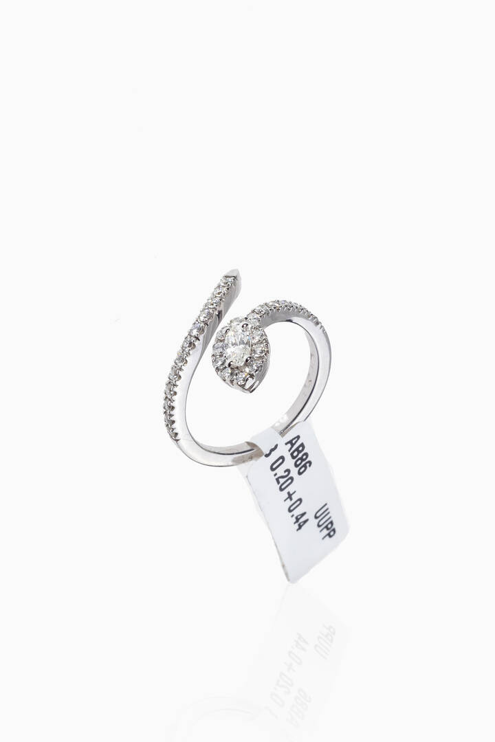 in oro bianco, a serpente, con diamante taglio navette di ct 0,20 e diamanti taglio brillante per totali ct 0,44 ca, colore G-H, purezza VVS