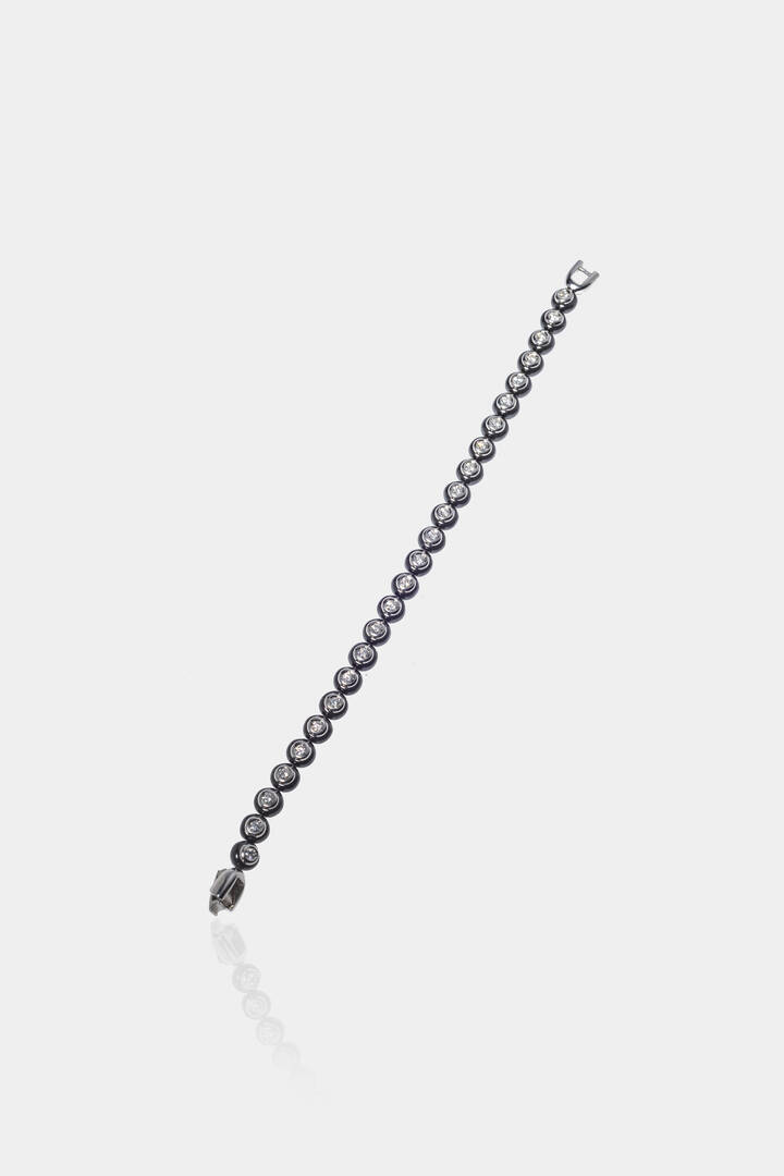 in oro bianco, modello tennis, con castoni in ceramica nera e diamanti taglio brillante per totali ct 1,0 ca