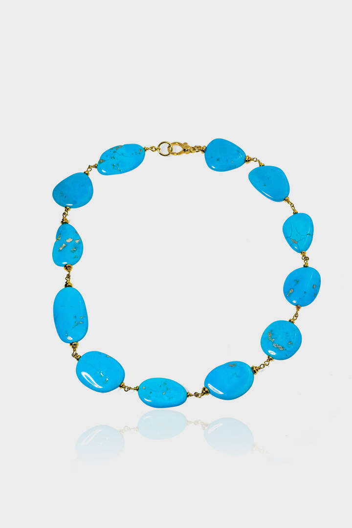 composto da pepite appiattite di turchesi. Distanziali e chiusura in oro giallo.