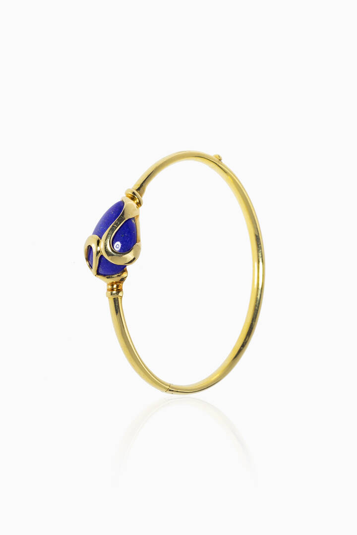 rigido in oro giallo con al centro goccia di lapislazzuli