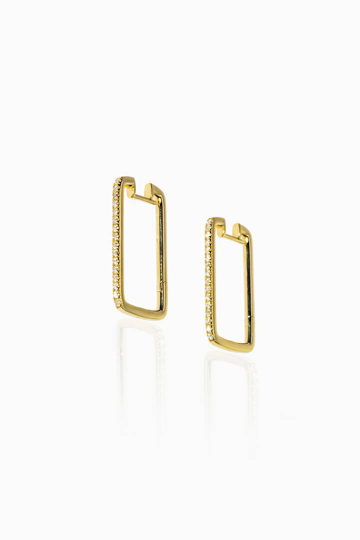 in oro giallo, a cerchio di forma rettangolare, con parte anteriore in diamanti taglio brillante per totali ct 0,33 ca, probabile colore G-H, purezza IF-VVS