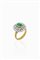 in oro giallo e bianco, al centro smeraldo taglio ottagonale a gradini di ct 1,05 ca e diamanti taglio brillante e taglio trapezio per totale ct 1,10 ca