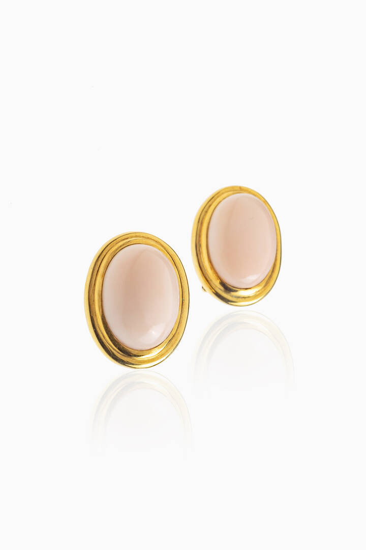 in oro giallo, con ovali in corallo rosa cabochon, a clip. Firmati "Armosino"