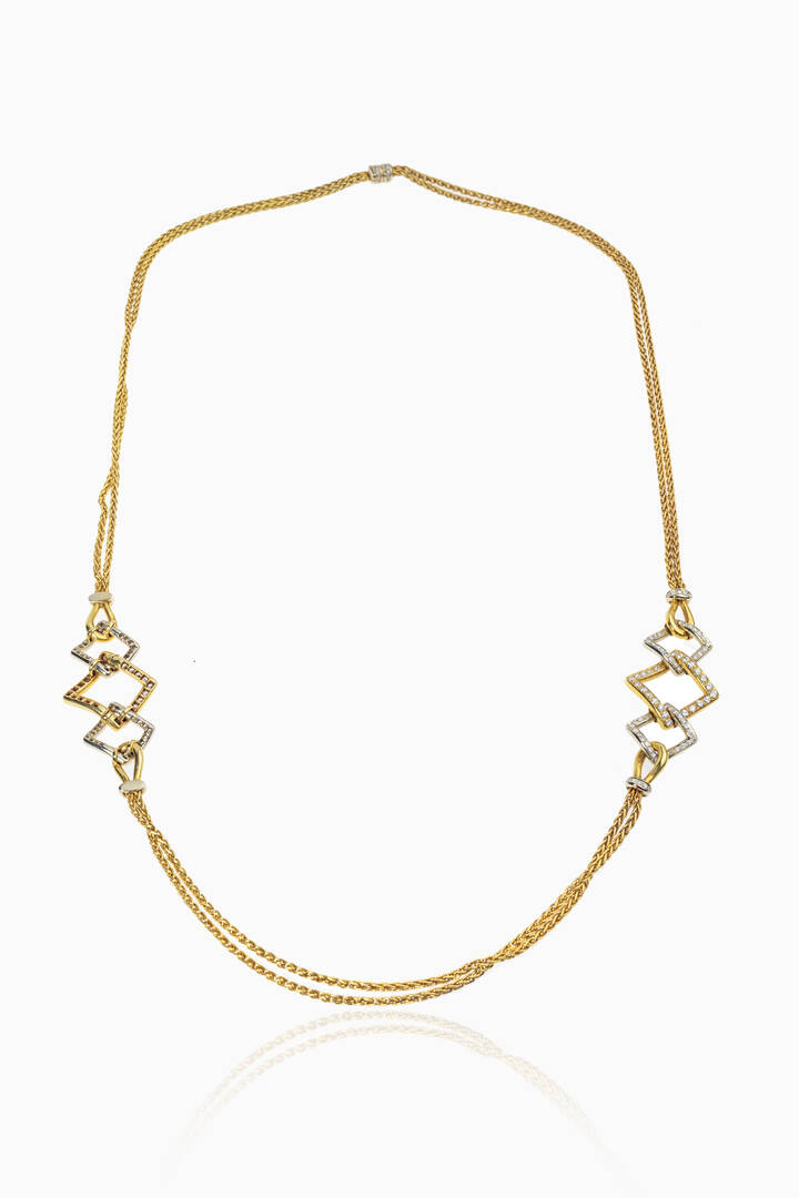 in oro giallo, catena a corda con inserti romboidali in oro bianco e brillanti per complessivi ct 2,0 ca, colore G-H, purezza VS