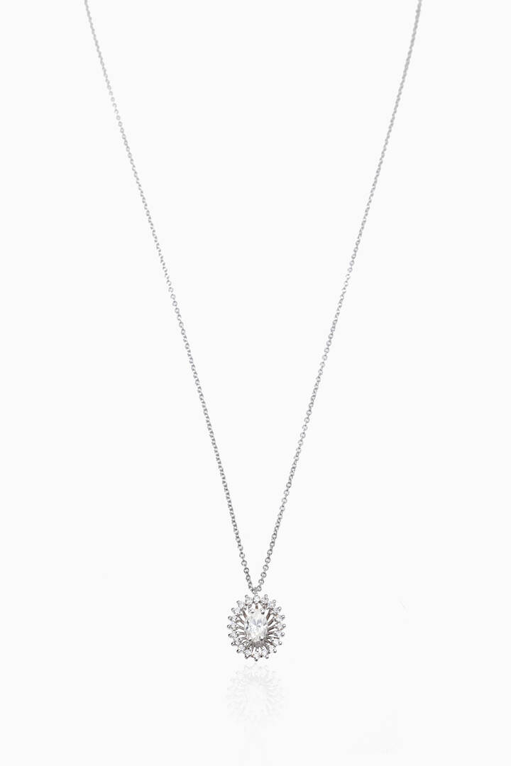 in oro bianco con al centro diamante taglio ovale di ct 0,38 ca, contornato da diamanti taglio brillante per totali ct 0,19 ca, probabile colore G-H, purezza VS