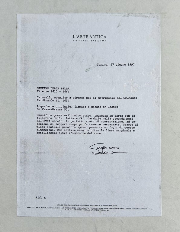 Lotto 5 | Stefano della Bella (Firenze1610-1664), Carosello eseguito in Firenze per le nozze del granduca Ferdinando II