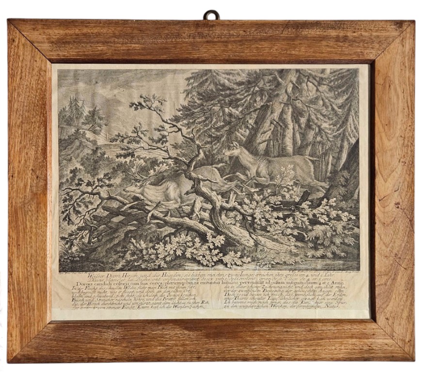 After Johannes Elias Ridinger (Ulm 1698- Augsburg 1767), Daino bianco e cerva nella foresta