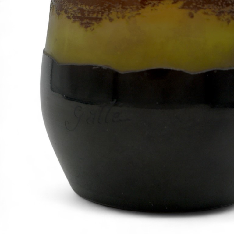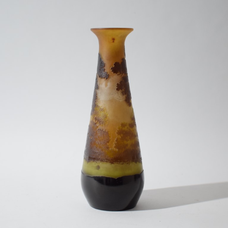 inciso all'acido con paesaggio boschivo, reca inciso il marchio Gallè