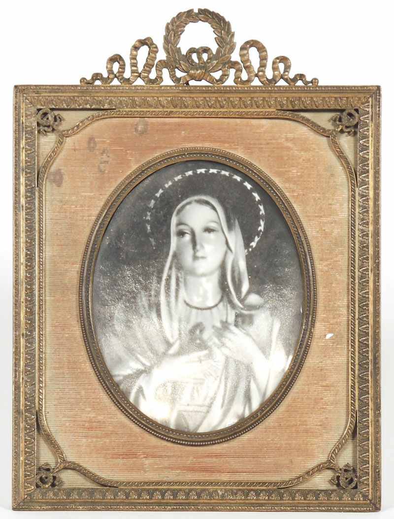 CORNICE PORTARITRATTI IN BRONZO realizzata in stile impero, bordo sbalzato con palmette, cimasa realizzata come una corona d'alloro e nastri BRONZE PICTURE FRAME