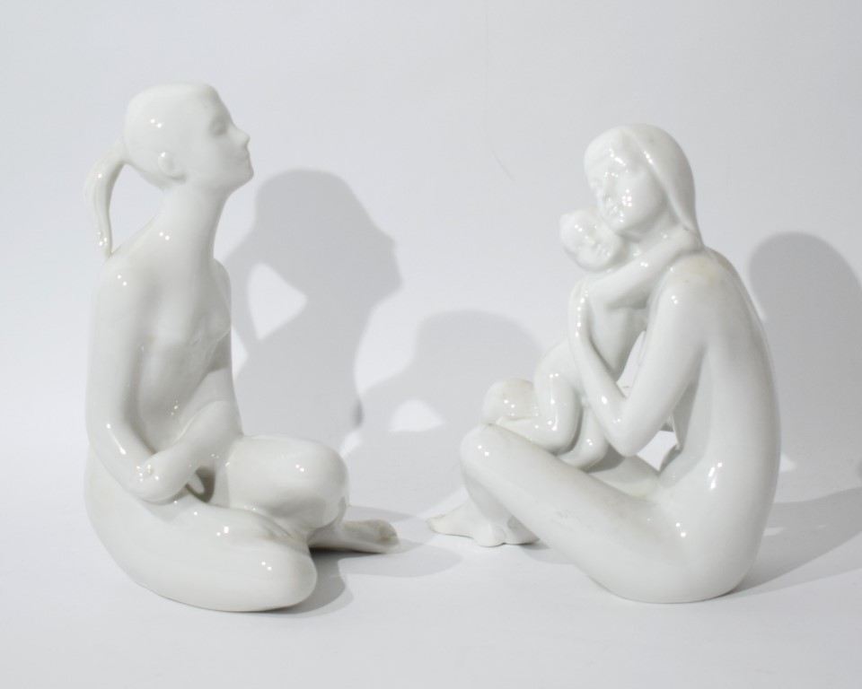 Statuetta di fanciulla e Maternità in porcellana bianca, Manifattura Royal Dux
