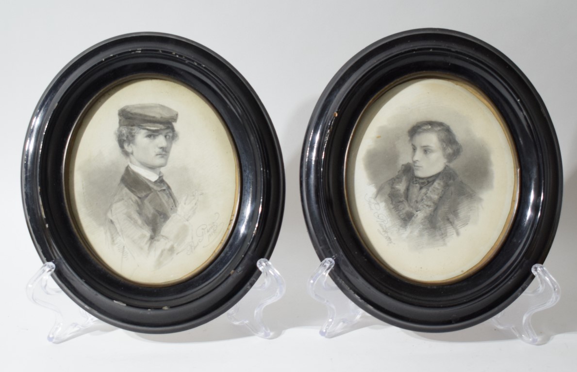 Due ritratti ovali di giovani gentiluomini In cornici ovali ebanizzate e...