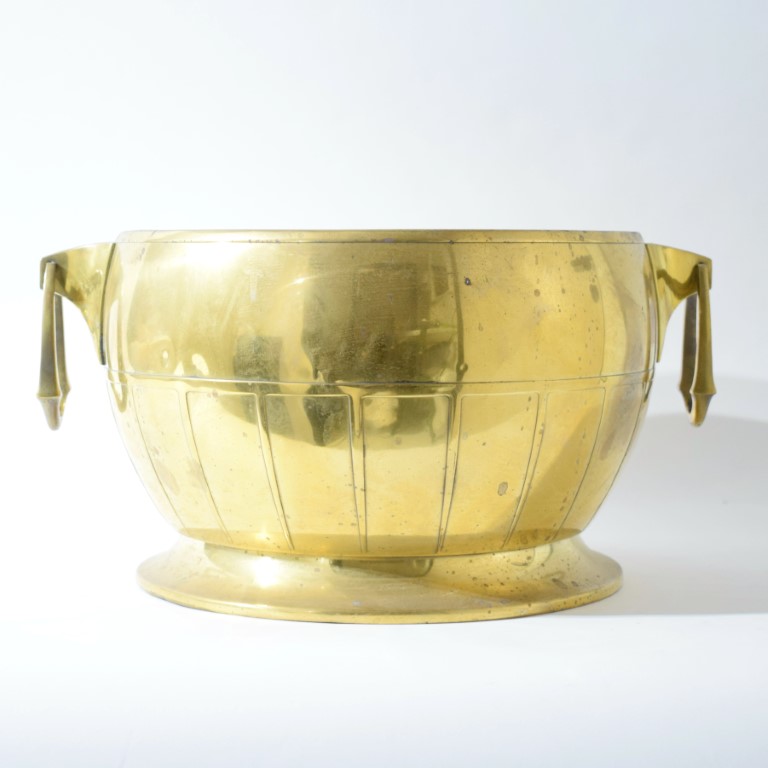 Grande cache-pot in ottone Anni Trenta Di forma circolare con nervature in...