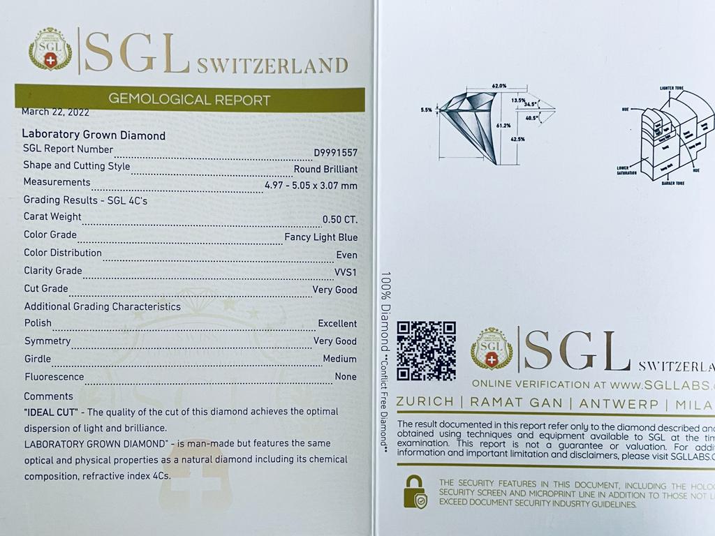 LAB GROWN DIAMOND 0.5 - COLOR FANCY LIGHT BLUE - CLARITY VVS1 - CERTIFICATE SGL - LG20303 - AUCTION FEE 25%
