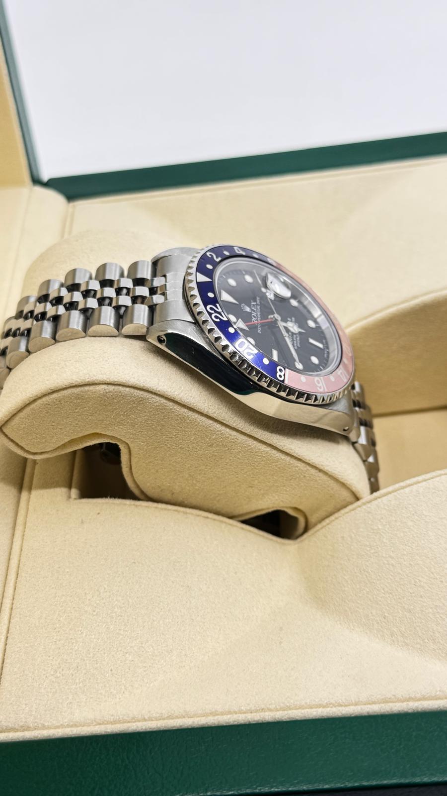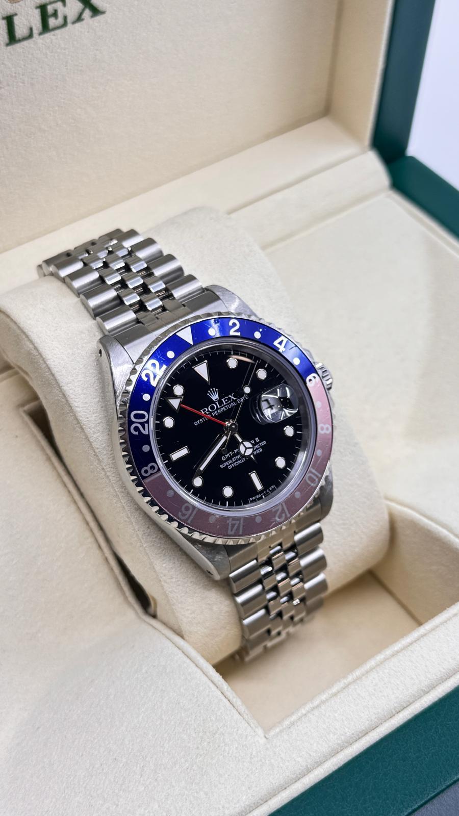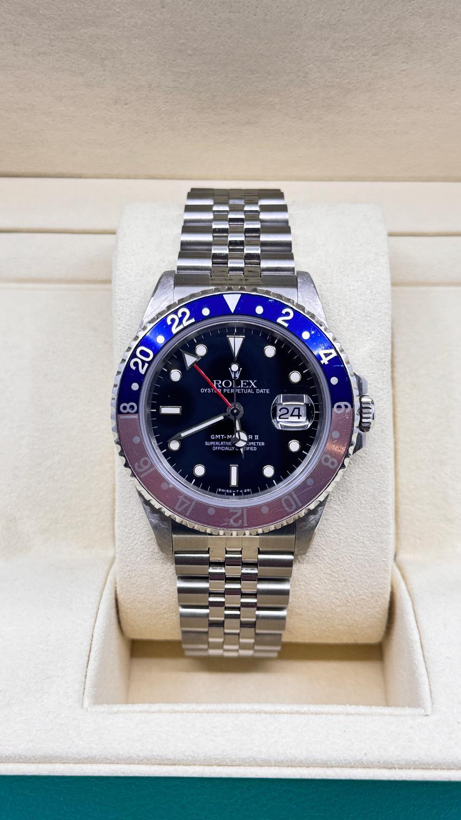 BRAND ROLEX MODEL (WATCH) GMT-MASTER II REFERENCE NUMBER 16710 MOVEMENT AUTOMATIC CASE MATERIAL STEEL STRAP MATERIAL STEEL CONDITION USED THE ITEM HAS SLIGHT SIGNS OF WEAR, SUCH AS LIGHT SCRATCHES, BUT NOT PERCEPTIBLE TO THE TOUCH. ORIGINAL ROLEX DOCUMENTS, NO BOX THE BOX USED ONLY FOR PHOTOGRAPHS NOT FOR SALE MOVEMENT AUTOMATIC YEAR 1987 CASE MATERIAL STEEL DIAMETER 40 MM WATERPROOF 10 ATM BEZEL MATERIAL STEEL GLASS SAPPHIRE CRYSTAL DIAL BLACK NUMBERS ON THE DIAL WITHOUT NUMBERS STRAP STRAP MATERIAL STEEL STRAP COLOR STEEL CLASP DÉPLOYANTE CLASP MATERIAL STEEL FUNCTIONS DATE, GMT - AUCTION COMMISSION 25%