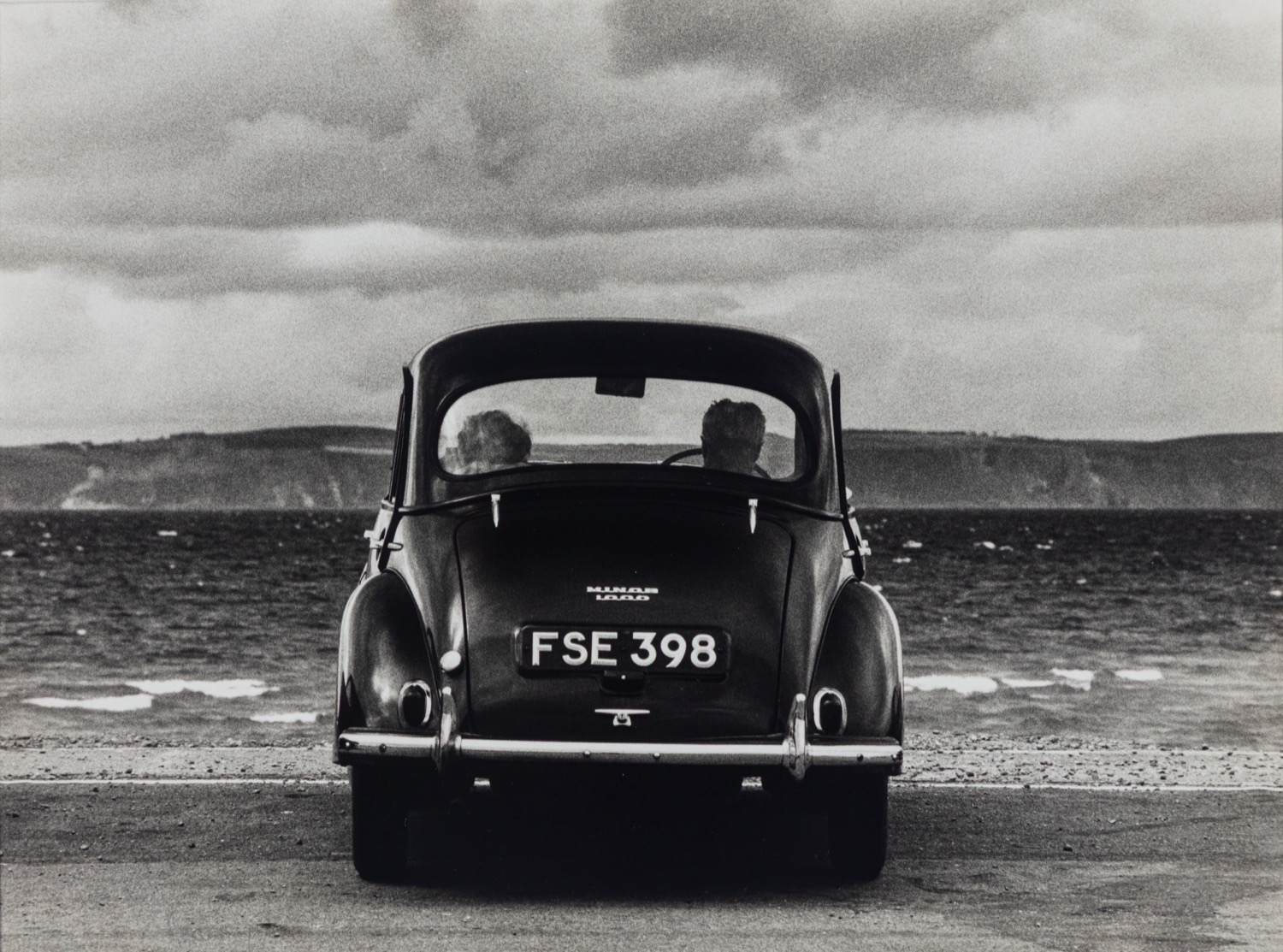 Se nella sterminata produzione di un fotoreporter come Gianni Berengo Gardin volessimo individuare le opere che lo hanno reso più famoso, le due qui presentate rientrano fra le prescelte. A ribadire lo stile del grande fotografo, entrambe sono state realizzate cogliendo con lucida rapidità l’attimo fuggente. Un giorno del 1977 in Gran Bretagna vede un’automobile, una classica e anzianotta Morris, posteggiata con il muso rivolto a una spiaggia. All’interno scorge le teste di una coppia e subito capisce che l’immagine suscita curiosità: perché i due se ne stanno lì fermi, che cosa si dicono, che cosa faranno? Si apposta alle loro spalle, mette al centro l’automobile che si staglia su un paesaggio quasi metafisico. Ancor più curiosa la storia della fotografia ripresa a Venezia: abitando al Lido e lavorando nel negozio di famiglia in città, prendeva ogni giorno il vaporetto senza abbandonate la fidata Leica. Improvvisamente un colpo di fortuna con un’immagine gli si forma davanti agli occhi: coglie così la schiena di un uomo che fa da schermo su ci si proietta la finestra posteriore del mezzo moltiplicando la presenza di persone che affollano la scena.