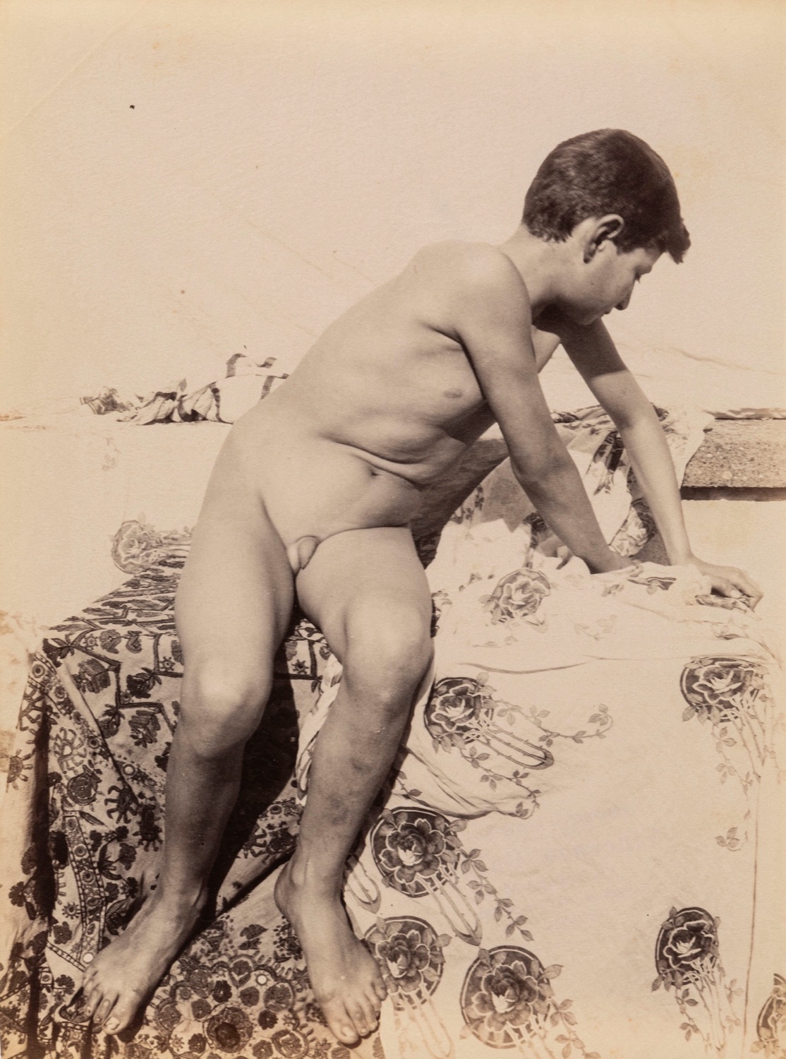 Essendo un autore meno conosciuto dei coetanei von Gloeden e von Plushow, Vincenzo Galdi è stato meno studiato dalla critica anche per l’abitudine piuttosto diffusa nell’800 di cofirmare le stampe o addirittura di non apporre alcuna firma. In tal modo le sue stampe potevano essere attribuite a von Plushow che era stato suo maestro o inserite nell’ampio novero delle fotografie erotiche. Rispetto la maggioranza di queste, tuttavia, Galdi si è sempre segnalato per la notevole qualità delle riprese e delle stampe. In questo nudo maschile, per esempio, si possono notare l’attenzione per la luce che crea ombre discrete e soprattutto la originale postura del soggetto che non si rivolge all’obiettivo ma si volta come a rifuggirlo. Resta evidente qui un richiamo alla pittura classica che, abitando a Roma, poteva aver visto in musei e pinacoteche della città.