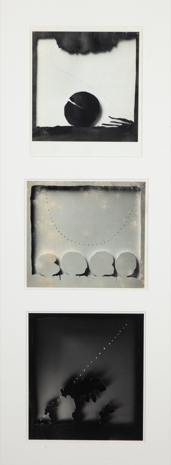 Il rapporto che Ugo Mulas ha stabilito con Lucio Fontana è di lunga data e questo consente al fotografo una complicità con l’artista emersa nella celebre sequenza del 1964 “L’attesa” con il taglio della tela. Qui, invece, il fotografo mostra quella sua abilità nel riprodurre le opere acquisita con la frequentazione degli studi di pittori e scultori. Queste tre stampe divengono così un efficace richiamo al lavoro artistico del grande maestro dello Spazialismo: si riconoscono tre celebri concetti spaziali del 1965 intitolati “Teatrini” perché composti da tele monocrome forate inserite in cornici sagomate che sono parti integranti delle opere. Il ritratto realizzato a Marcel Duchamp – più volte pubblicato nelle più importanti monografie – fa parte di un’ampia serie di riprese realizzate a New York in esterni in Washington Square, all’interno del Museum of Modern Art di fronte al suo celebre “Grande vetro” che osserva con distacco e, come nel nostro caso, nella sua casa. È lo stesso Mulas a ricordare che di Duchamp gli interessava mettere in evidenza “gli atteggiamenti del non fare” e “mettere in evidenza la sua rinuncia”. Così lo coglie mentre, seduto sulla sua famosa poltrona, getta uno sguardo sulla fotografia che lo ritrae mentre gioca a scacchi con una donna nuda. Per la cronaca era stata realizzata nel 1963 al Museo d’arte di Pasadena, L.A., dove Walter Hopps aveva curato la prima retrospettiva americana dell’artista. L’autore dell’immagine, Julian Wasser, durante l’inaugurazione chiese alla ventenne amica Eva Babliz di posare nuda in omaggio all’arte provocatoria di Duchamp, cosa che lei, figlia di un’artista, fece con trasporto.