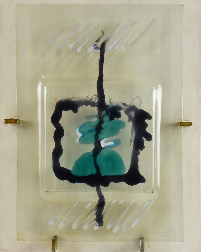 Adriano Tuninetto SENZA TITOLO, 1977 vetro, cm 44,5x32 firma e data difetti