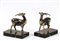 COPPIA DI FERMALIBRI IN METALLO PATINATO raffiguranti due antilopi, su basi...