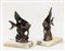 COPPIA DI FERMALIBRI IN METALLO PATINATO raffiguranti pesci tropicali, su basi in onice h cm 21 PAIR OF PATINATED METAL BOOKENDS