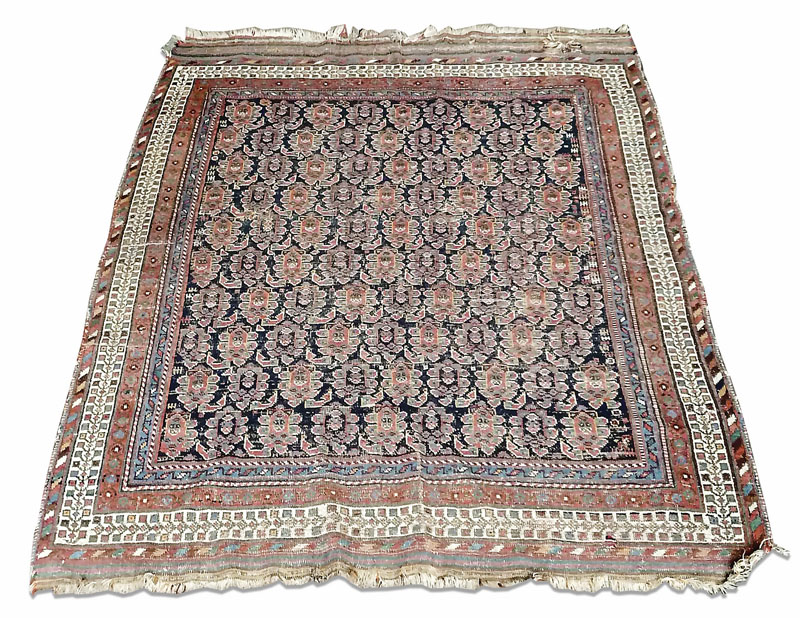 APPETO PERSIANO fondo nero, campo a disegni cashmere nei toni del rosso, blu e avorio, difetti cm 170x128 PERSIAN RUG