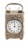 Drew & Co., Leadenhall Street, London, Piccola pendola da viaggio in argento. 1940 ca. Piccola pendola da viaggio in argento con cassa decorata a motivi floreali, sportellino apribile sul retro per la carica. cm 4,4x4,7. gr. 275. Movimento non verificato. (1)