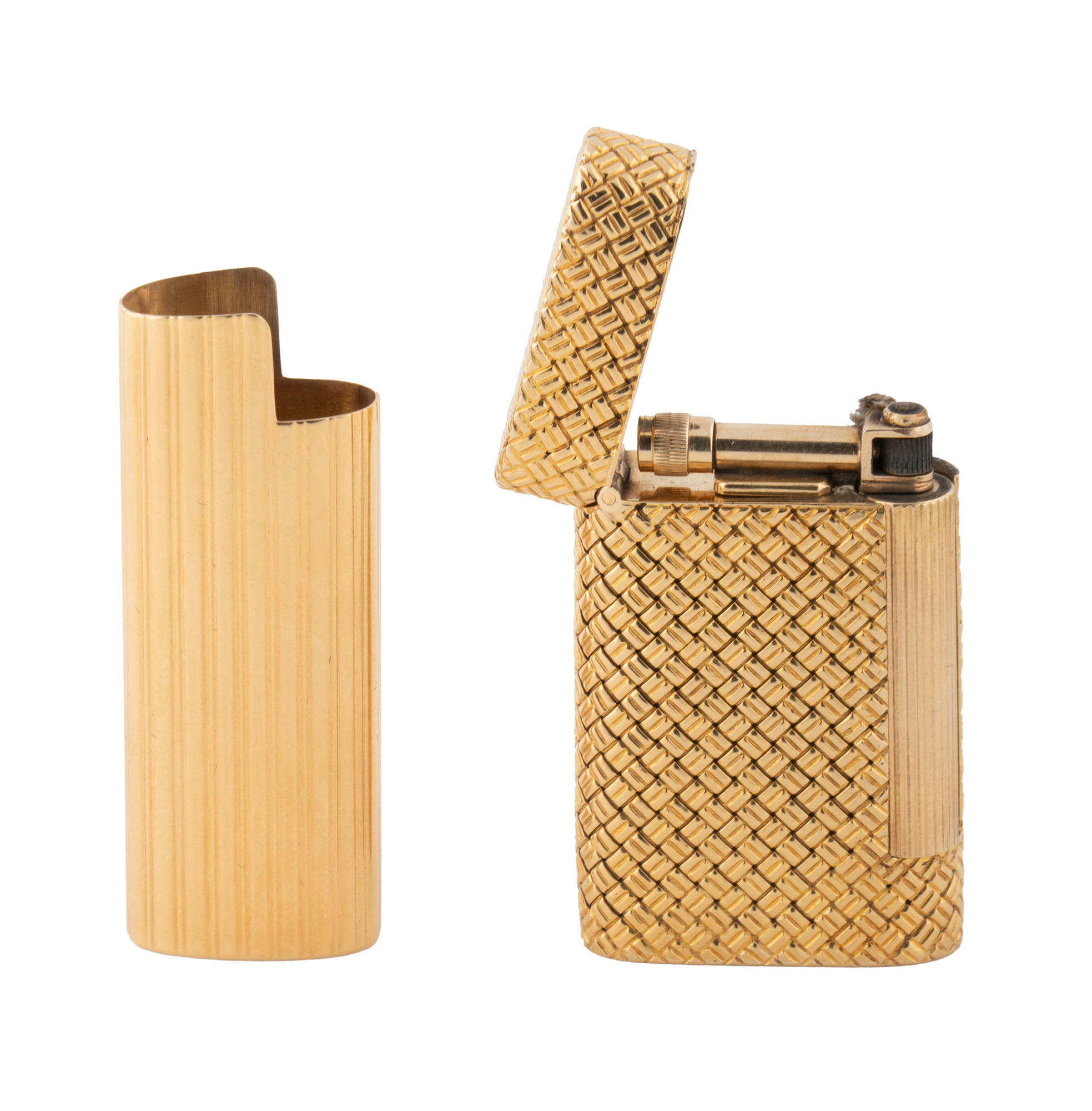 Lotto composto di 1 accendino e 1 porta accendino in oro.