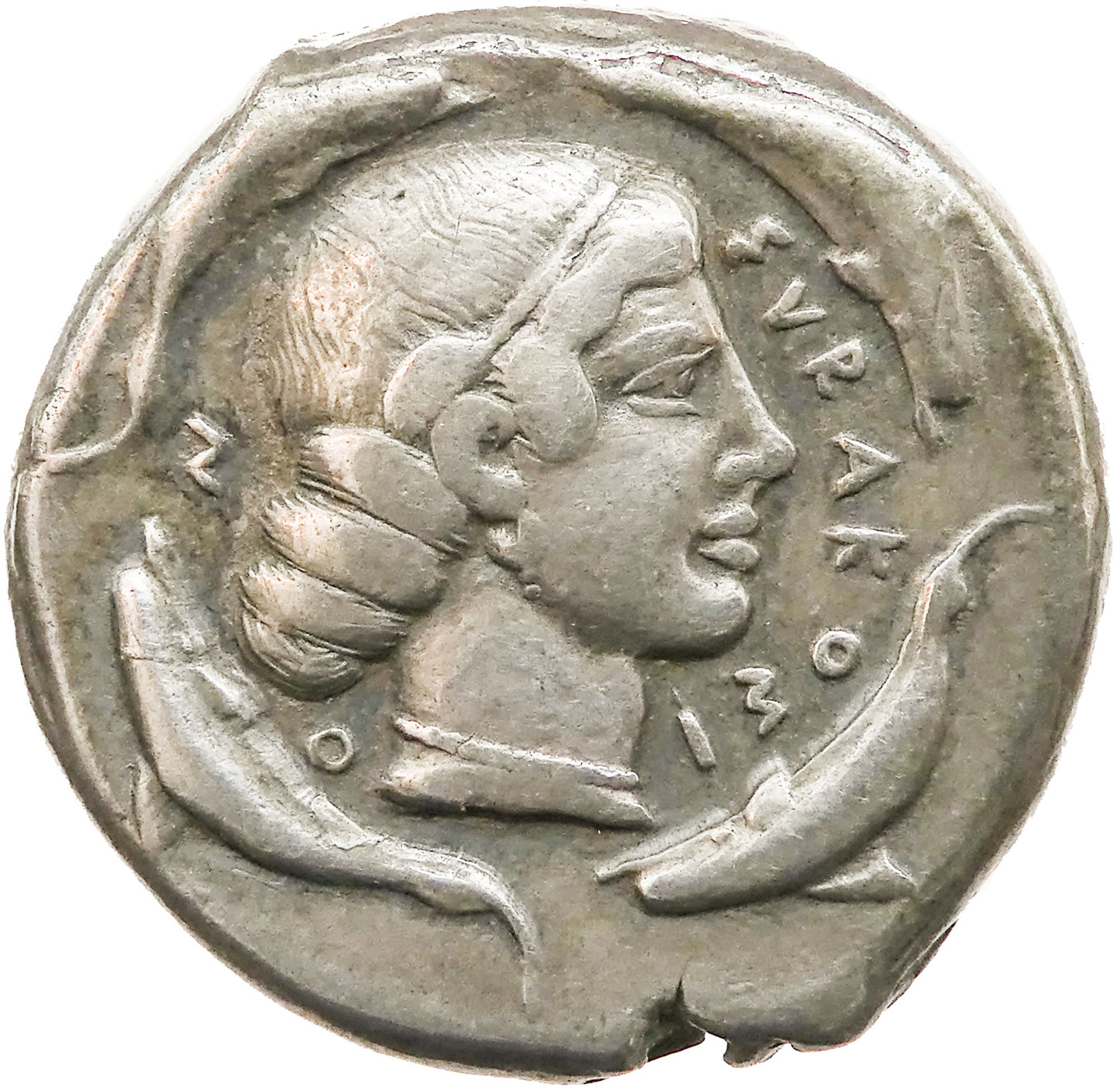 Siracusa. (465-425 a.C.). Tetradramma. D: Testa della ninfa Aretusa volta a dr. R: Quadriga andante a dr. Argento. mm 25. g 17,21. Conservazione: SPL. (1)SNG Dan, 753.
