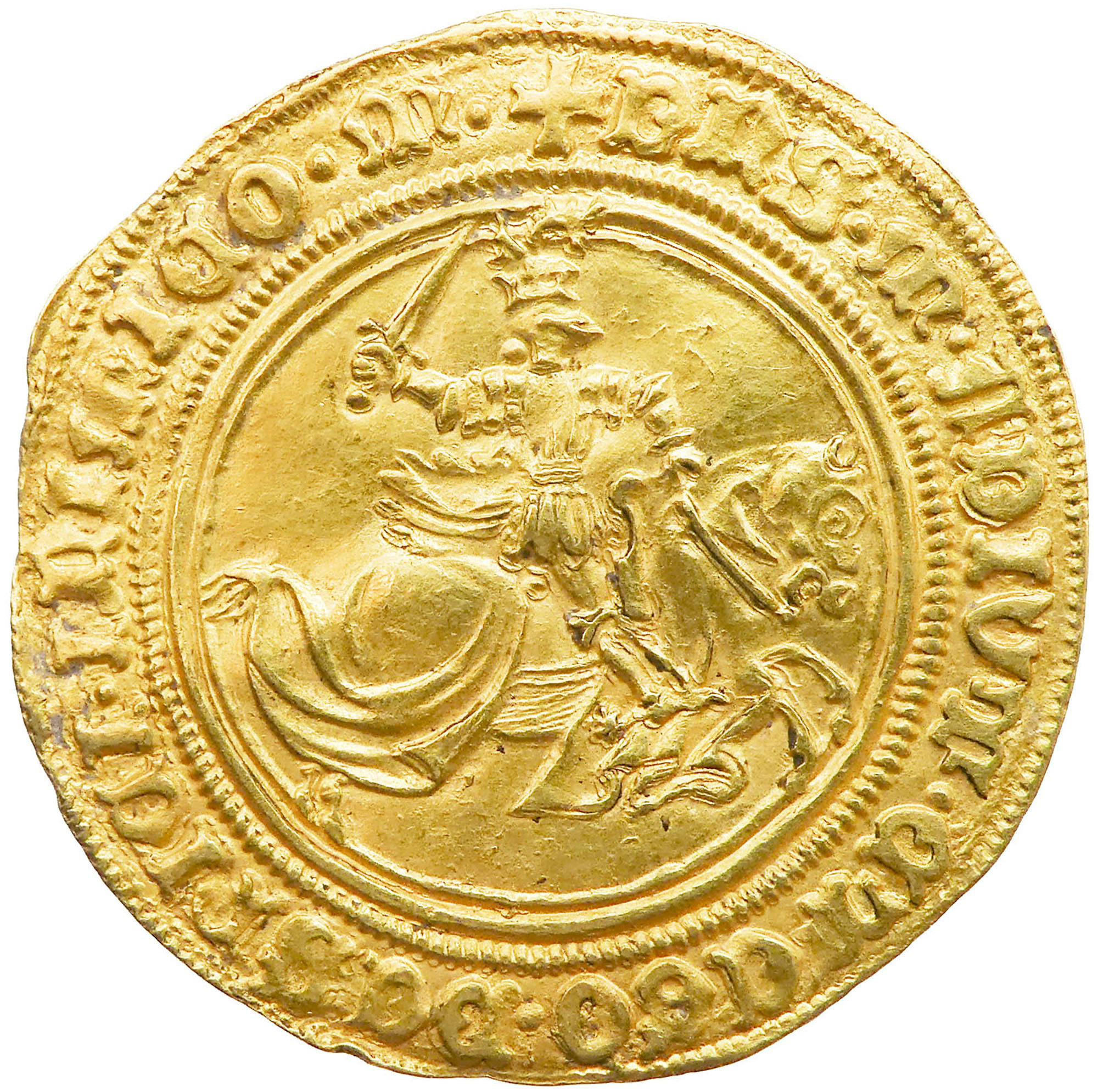 Napoli. Alfonso I d’Aragona. (1442-1458). Alfonsino d'oro. D: Stemma inquartato. R: Il re a cavallo verso dr. Oro. mm 29. g 5,26. Conservazione: q.SPL. Rarirà: R3. (1)MIR, 52.